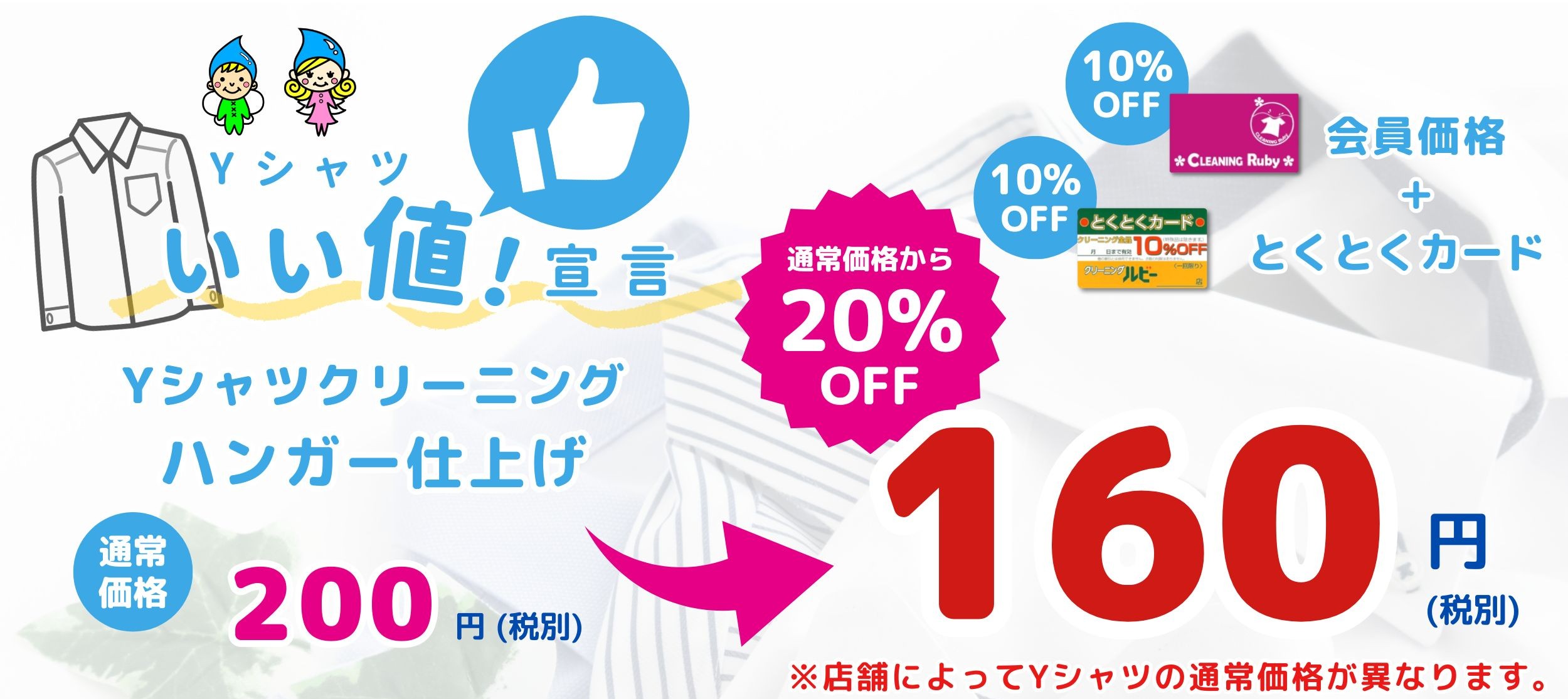 クリーニングルビーの会員カードと「とくとくカード」を併用すると、Yシャツクリーニングが通常価格から最大20%OFFになります!