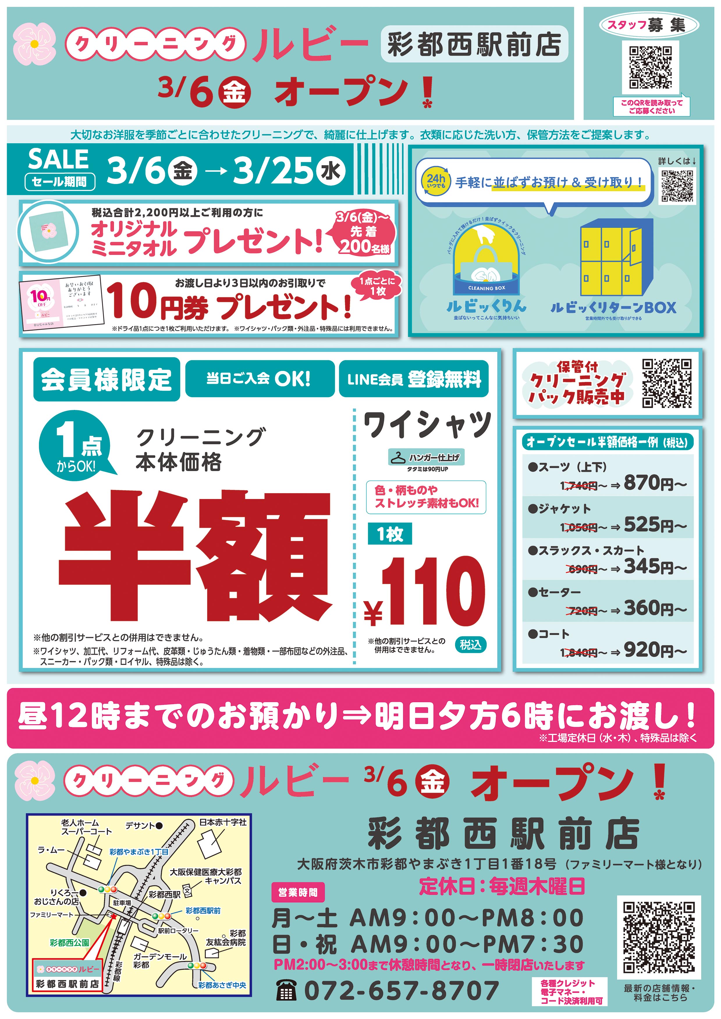 【2026.3.6】彩都西駅前店オープン【オープンセール半額】